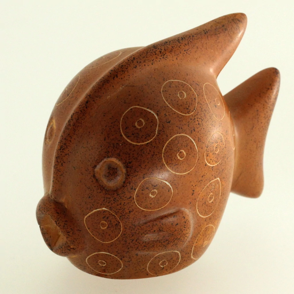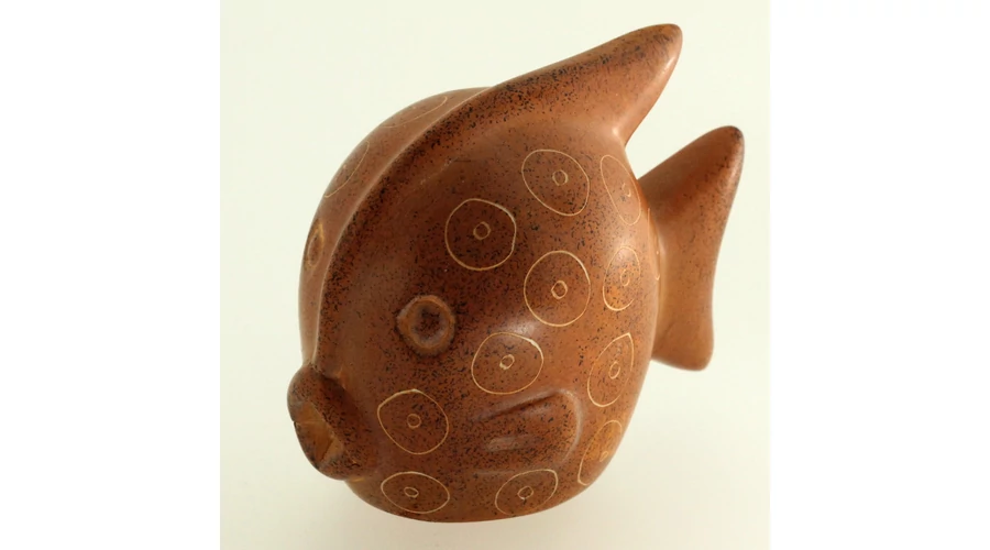 Afrikakő a Souvenir1 ajándék nagykereskedés kínálatában. Rengeteg színben, mintában kaphatóak még a szuvenir dísztárgyak. Barna színű afrikakő dísz hal.