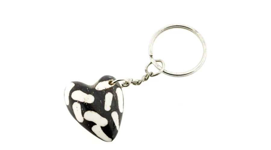 Afrikakő a Souvenir1 ajándék nagykereskedés kínálatában. Rengeteg színben, mintában kaphatóak még a szuvenir dísztárgyak. Szív alakú afrikakő kulcstartó. Fekete-fehér.