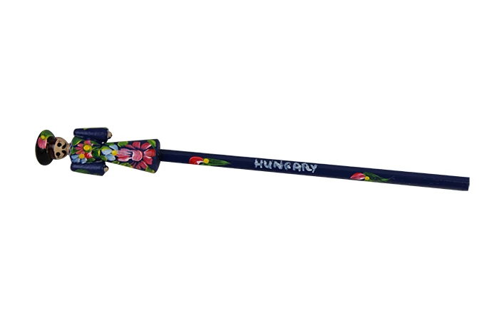 Ceruza a Souvenir1 ajándék nagykereskedés kínálatában. Népies, hagyományőrző szuvenír. Kézzel festett, fa ceruza, betyár figurával a tetején.