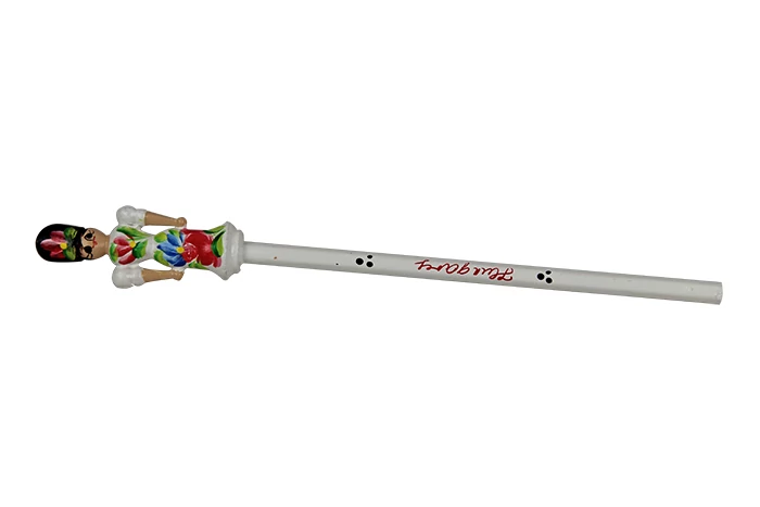 Ceruza a Souvenir1 ajándék nagykereskedés kínálatában. Népies, hagyományőrző szuvenír. Kézzel festett, fa ceruza, lány figurával a tetején.