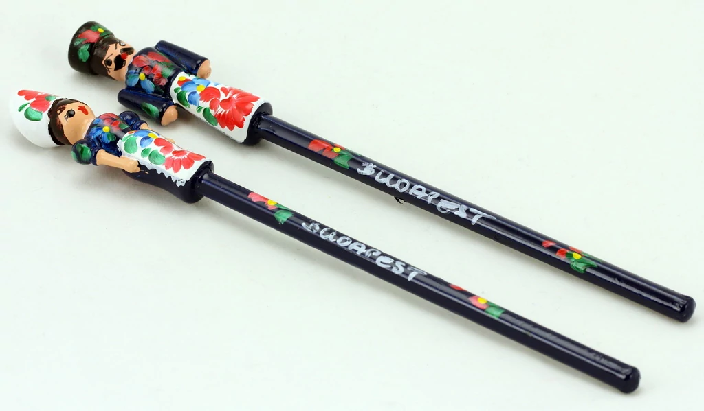 Ceruza a Souvenir1 ajándék nagykereskedés kínálatában. Népies, hagyományőrző szuvenír. Kézzel festett, fa ceruza. Betyár illetva lány figurás páros, felakasztható csomagolásban.