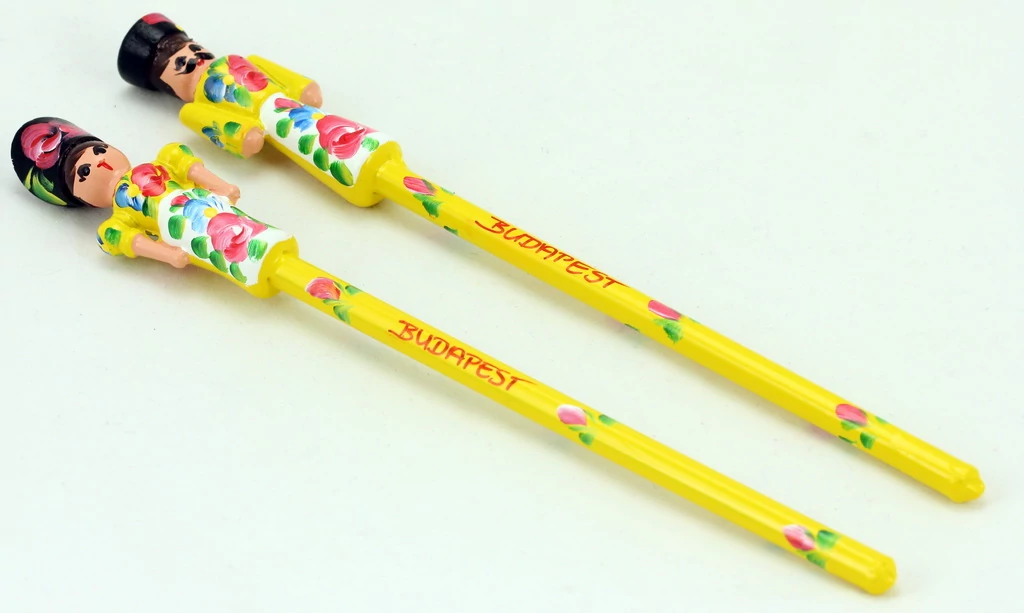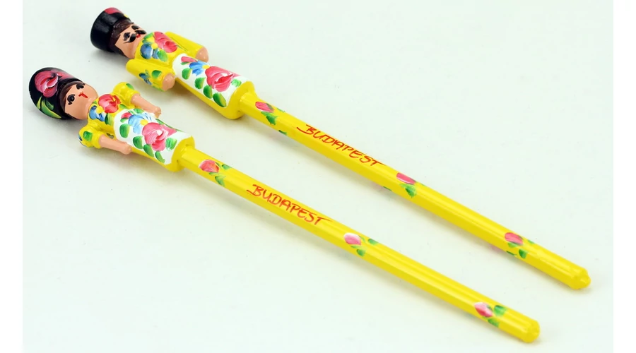 Ceruza a Souvenir1 ajándék nagykereskedés kínálatában. Népies, hagyományőrző szuvenír. Kézzel festett, fa ceruza. Betyár illetva lány figurás páros, felakasztható csomagolásban.