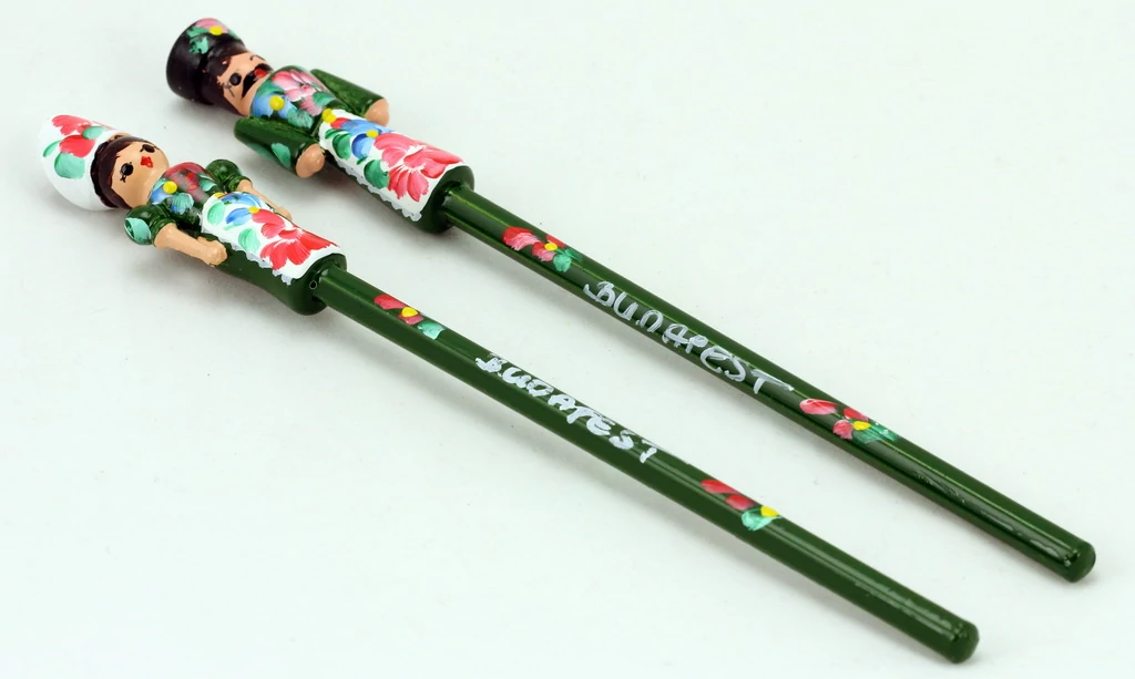Ceruza a Souvenir1 ajándék nagykereskedés kínálatában. Népies, hagyományőrző szuvenír. Kézzel festett, fa ceruza. Betyár illetva lány figurás páros, felakasztható csomagolásban.