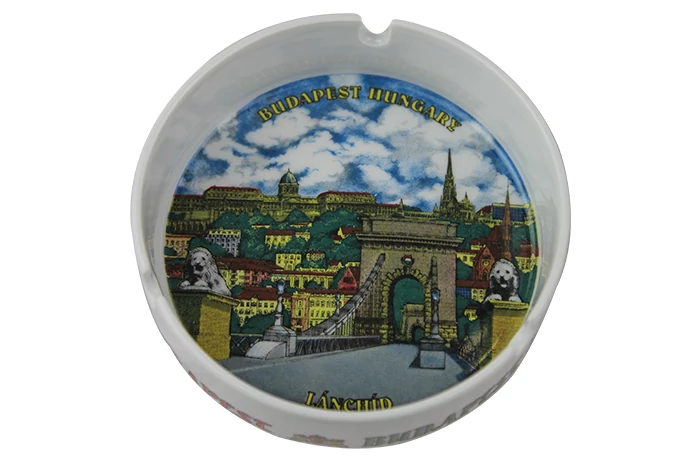 Hamutál a Souvenir1 ajándék nagykereskedés kínálatában. Porcelánból készült ajándéktárgy. A Lánchíd színes grafikájával, Budapest és Hungary felirattal.