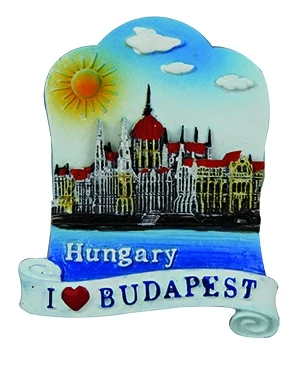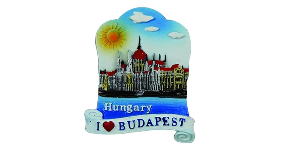 Hűtőmágnes a Souvenir1 ajándék nagykereskedés kínálatában. Rengeteg színben, mintában kaphatóak még a szuvenir hűtőmágnesek. Műanyag hűtőmágnes a Parlament színes domború mintájával és Budapest felirattal.