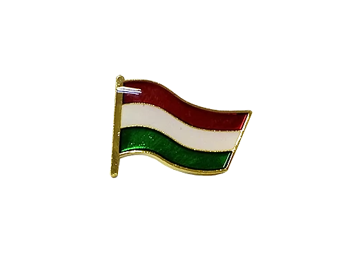 Kitűző a Souvenir1 ajándék nagykereskedés kínálatában. Magyar zászlót formázó fém kitűző.