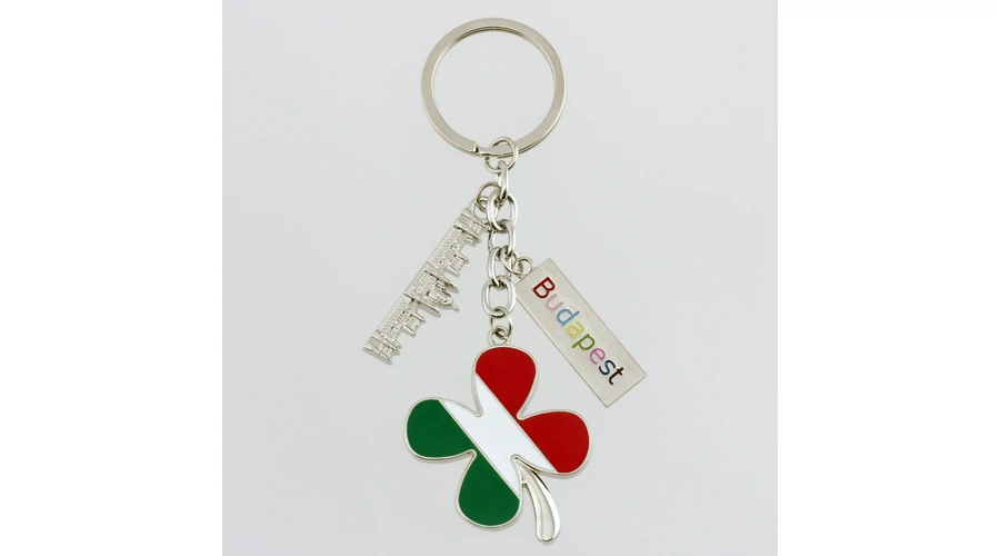 Kulcstartó a Souvenir1 ajándék nagykereskedés kínálatában. Rengeteg színben, mintában kaphatóak még a szuvenir kulcstartók. Lóhere, parlament és budapest címke található ezen a fém kulcstartón,