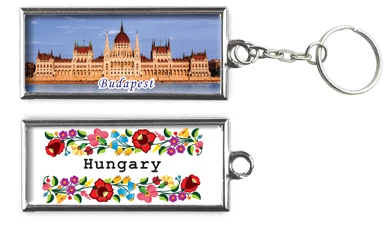 Kulcstartó a Souvenir1 ajándék nagykereskedés kínálatában. Rengeteg színben, mintában kapható még szuvenír kulcstartó. Téglalap alakú kulcstartó. Egyik oldalán a Parlamenttel, másik oldalán magyaros virág motívumokkal, Budapest és Hungary felirattal.