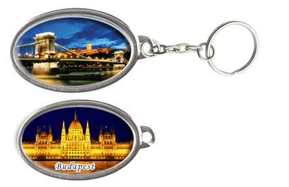 Kulcstartó a Souvenir1 ajándék nagykereskedés kínálatában. Rengeteg színben, mintában kapható még szuvenír kulcstartó. Ovális alakú kulcstartó. Egyik oldalán a Parlament, másik oldalán Budai vár a Lánchíddal látható.