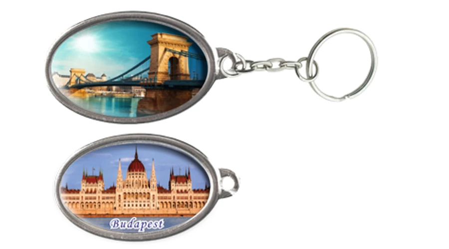 Kulcstartó a Souvenir1 ajándék nagykereskedés kínálatában. Rengeteg színben, mintában kapható még szuvenír kulcstartó. Ovális alakú kulcstartó. Egyik oldalán a Parlament, másik oldalán a Lánchíd látható.