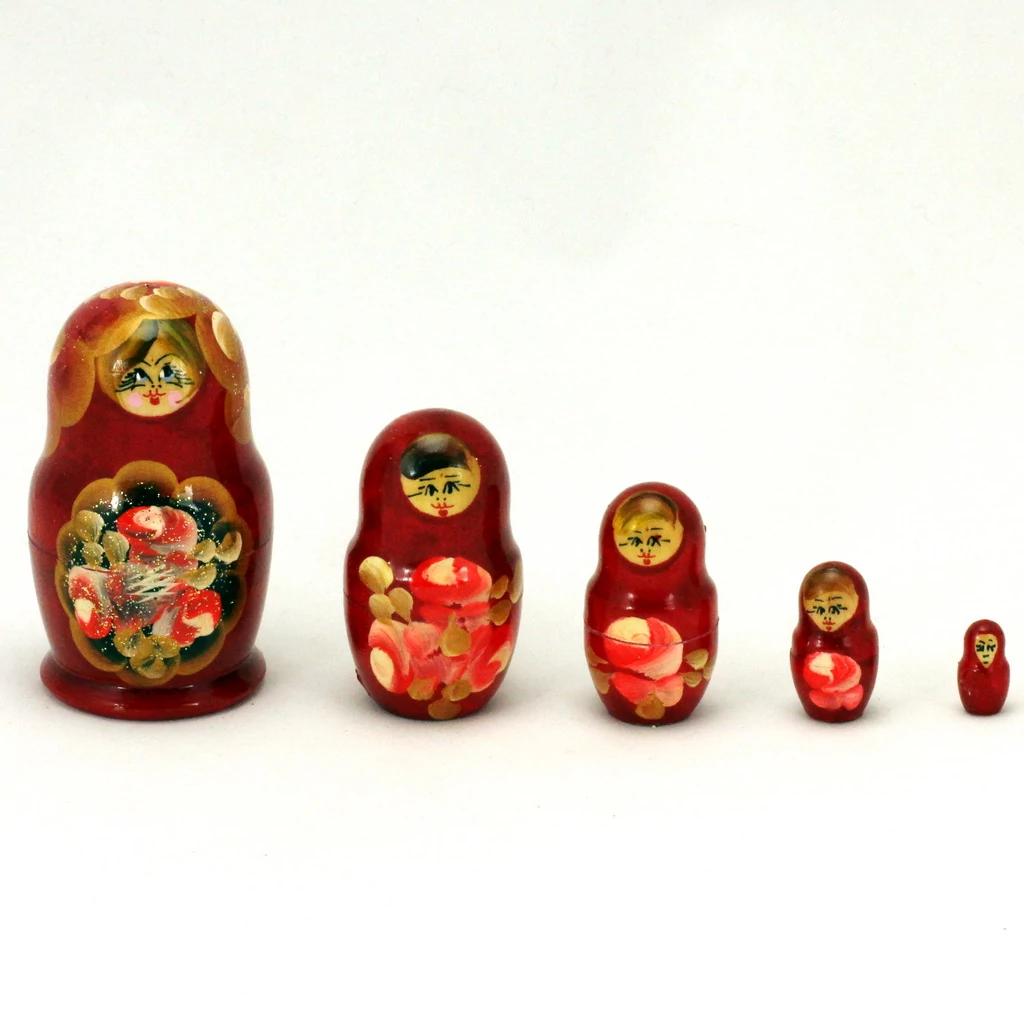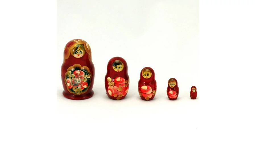 Matrioska a Souvenir1 ajándék nagykereskedés kínálatában. Jellegzetes kelet-európai dísztárgy, 5db egymásba rakható fa matrioska baba. A termékek kézzel készültek, ezért változatos mintákkal kaphatóak. A megadott méretektől és mintáktól minimális eltérés lehetséges.