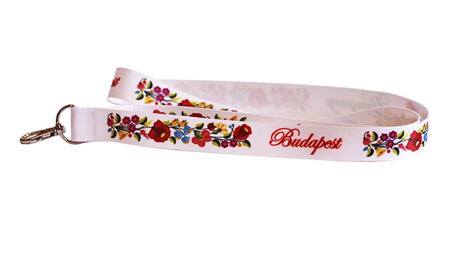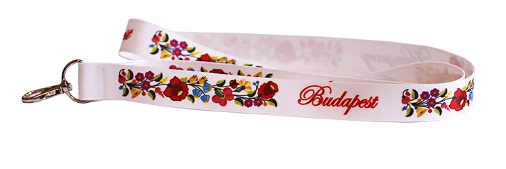 Nyakpánt a Souvenir1 ajándék nagykereskedés kínálatában. Magyarországhoz kapcsolódó ajándéktárgy. Több funkciós szuvenír emlék. Fehér alapon kalocsai mintás nyakpánt Budapest és Hungary felirattal.