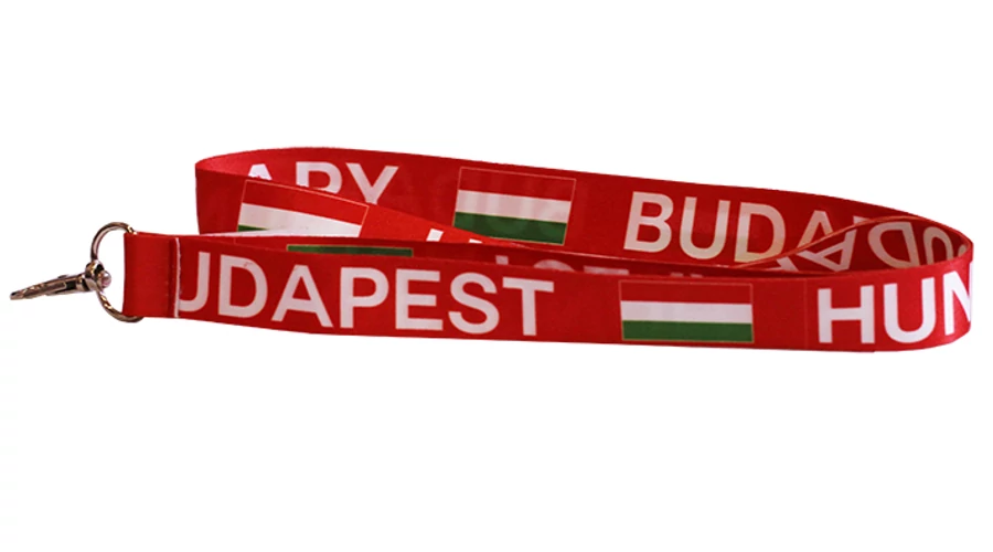 Nyakpánt a Souvenir1 ajándék nagykereskedés kínálatában. Magyarországhoz kapcsolódó ajándéktárgy. Több funkciós szuvenír emlék. Piros színű, Hungary és Budapest feliratú nyakpánt zászlóval.