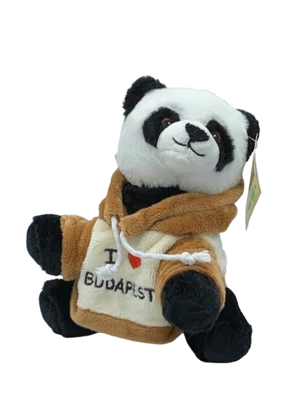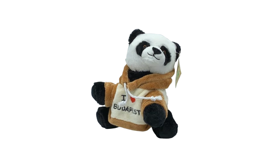 Nyuszi a Souvenir1 ajándék nagykereskedés kínálatában. Plüss nyuszi figura, Budapest feliratú pulcsiban.
