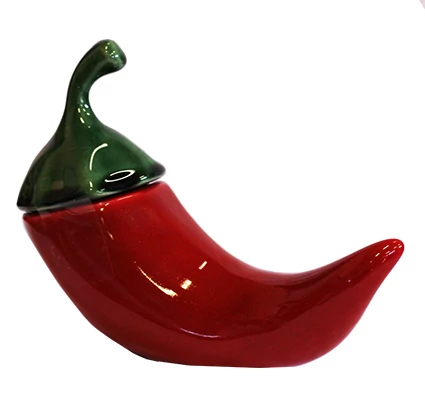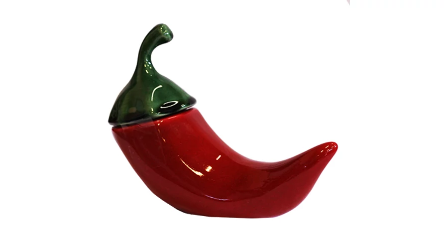 Pirospaprika a Souvenir1 ajándék nagykereskedés kínálatában. Kalocsa környéki édes pirospaprika, paprika alakú kerámia tartóban.