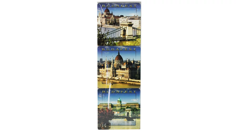 Poháralátét a Souvenir1 ajándék nagykereskedés kínálatában. 6 db-os poháralátét, Budapest képeivel és Budapest felirattal.