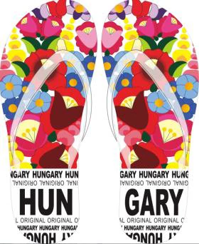 Női, Robin Ruth márkájú design papucs, Hungary felirattal. Fehér alapon kalocsai mintás flip-flop papucs.