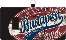 Unisex, Robin Ruth márkájú tépőzáras pénztárca. Fekete alapon, piros, fehér és kék színben, Budapest felirattal.