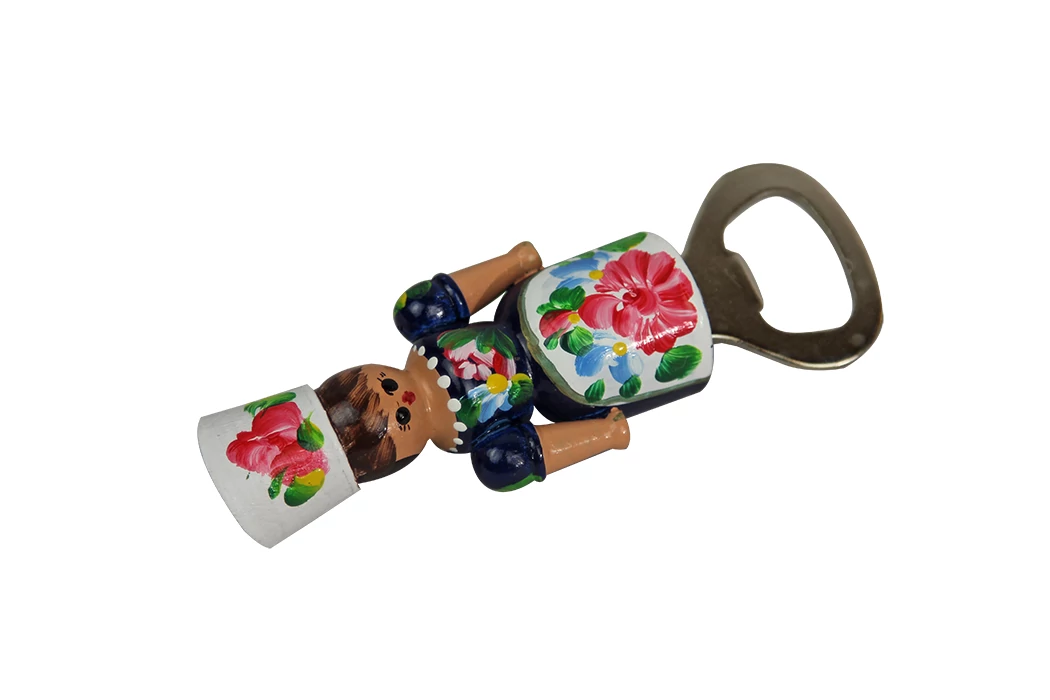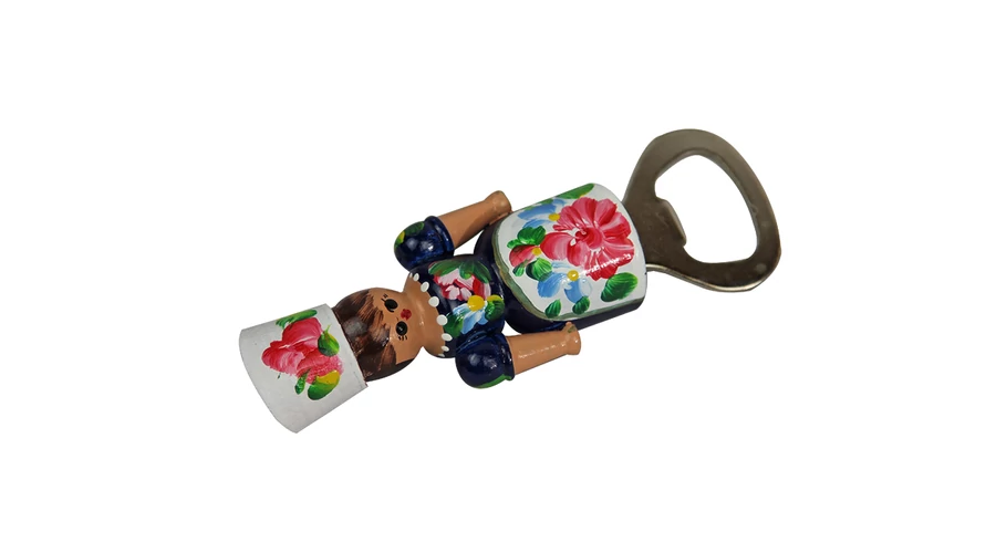 Fa sörbontó a Souvenir1 ajándék nagykereskedés kínálatában. Népies, hagyományőrző szuvenír. Fából készült magyaros lány figura sörbontóval. Kézzel festett, Hungary felirattal. Celofán csomagolásban kapható.