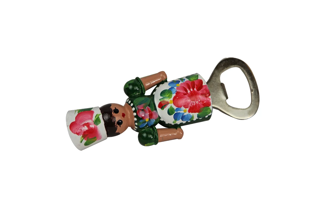 Fa sörbontó a Souvenir1 ajándék nagykereskedés kínálatában. Népies, hagyományőrző szuvenír. Fából készült magyaros lány figura sörbontóval. Kézzel festett, Hungary felirattal. Celofán csomagolásban kapható.