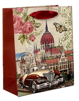 Dísztasak a Souvenir1 ajándék nagykereskedés kínálatában. Kis méretű ajándék zacskó a Parlament színes grafikájával.