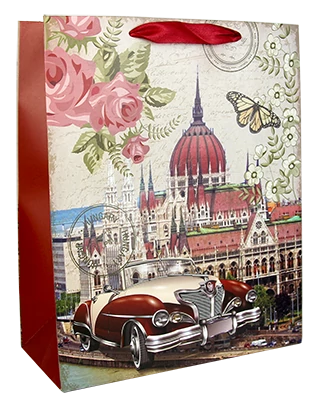 Dísztasak a Souvenir1 ajándék nagykereskedés kínálatában. Nagy méretű ajándék zacskó a Parlament színes grafikájával.